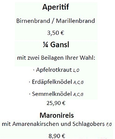Wir verwöhnen Sie mit köstlichen Gansl und klassischen Beilagen,
