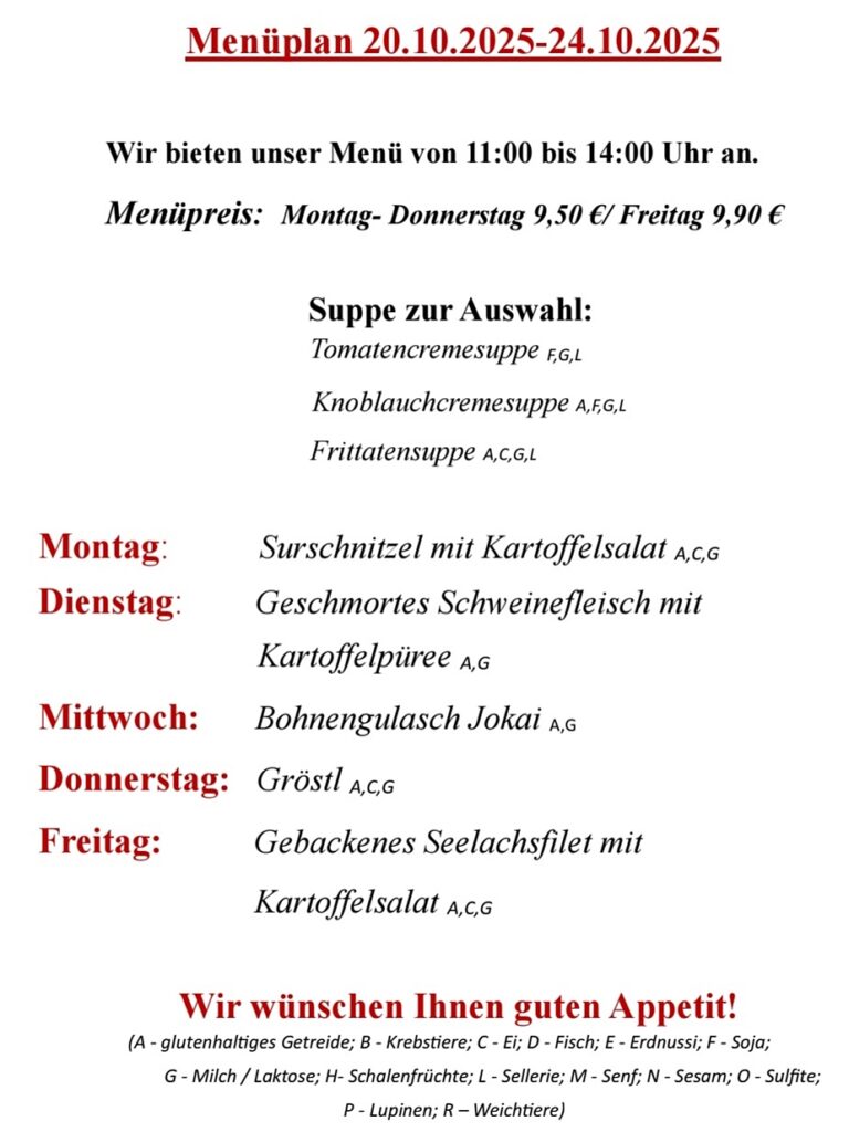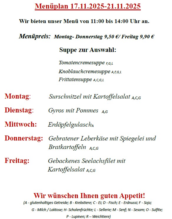 Auskünfte telefonisch unter: 018106631 . Hier können sie unsere Speisekarte auch als Pdf herunterladen.