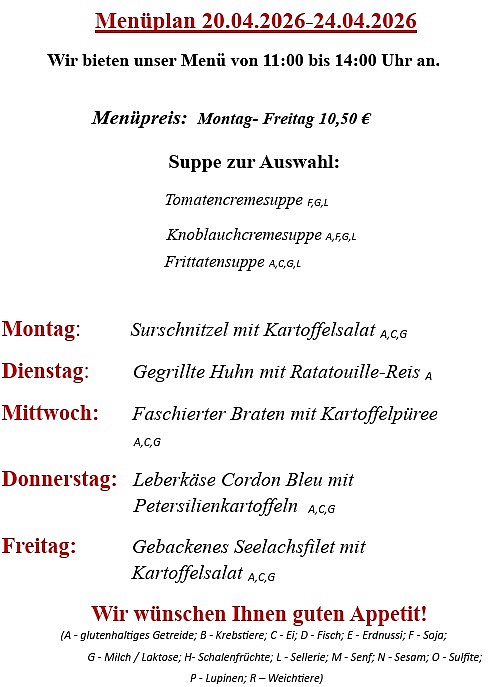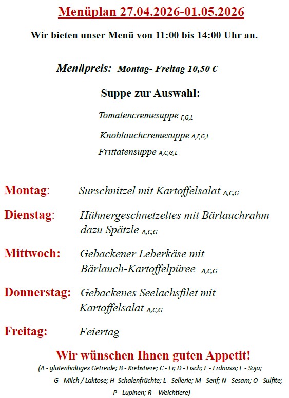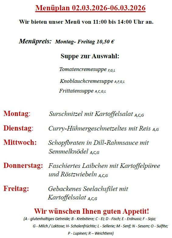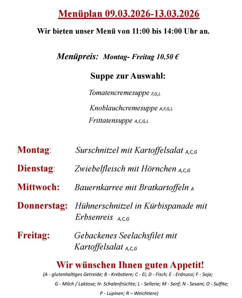 Auskünfte telefonisch unter: 018106631 . Hier können sie unsere Speisekarte auch als Pdf herunterladen.